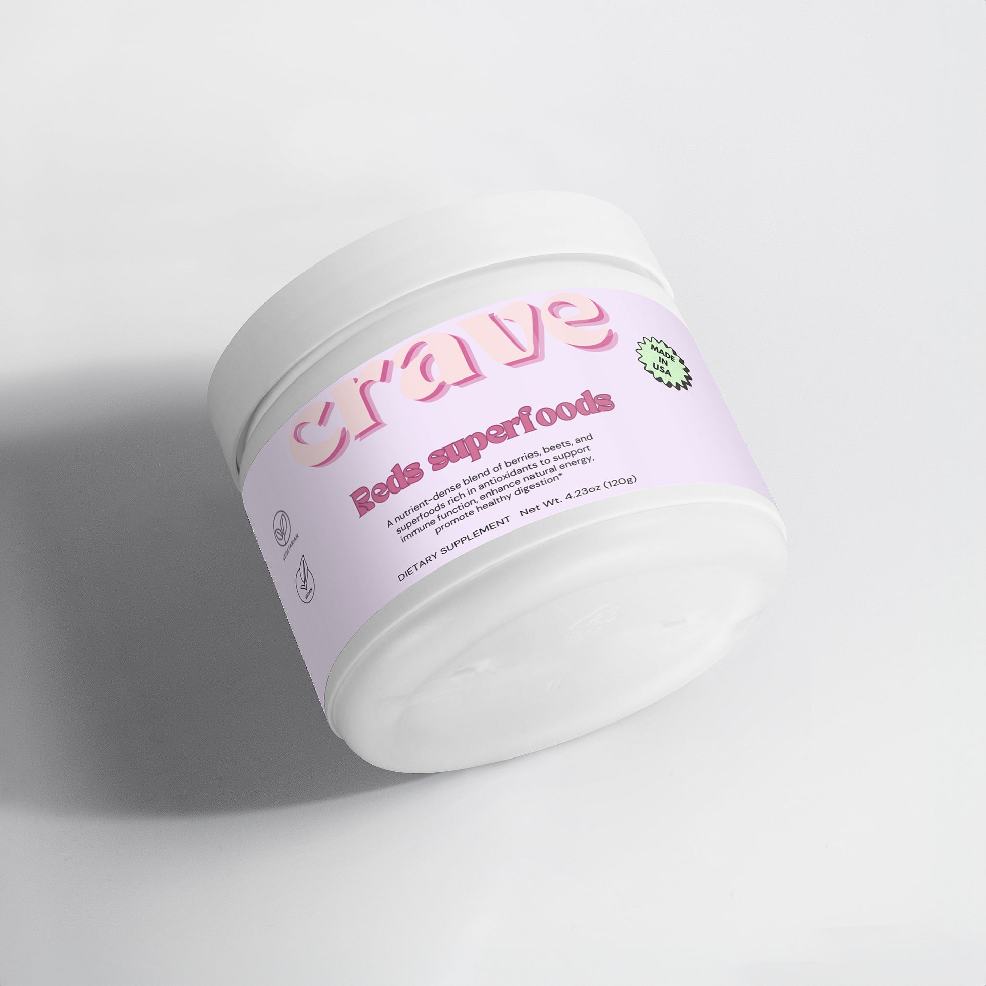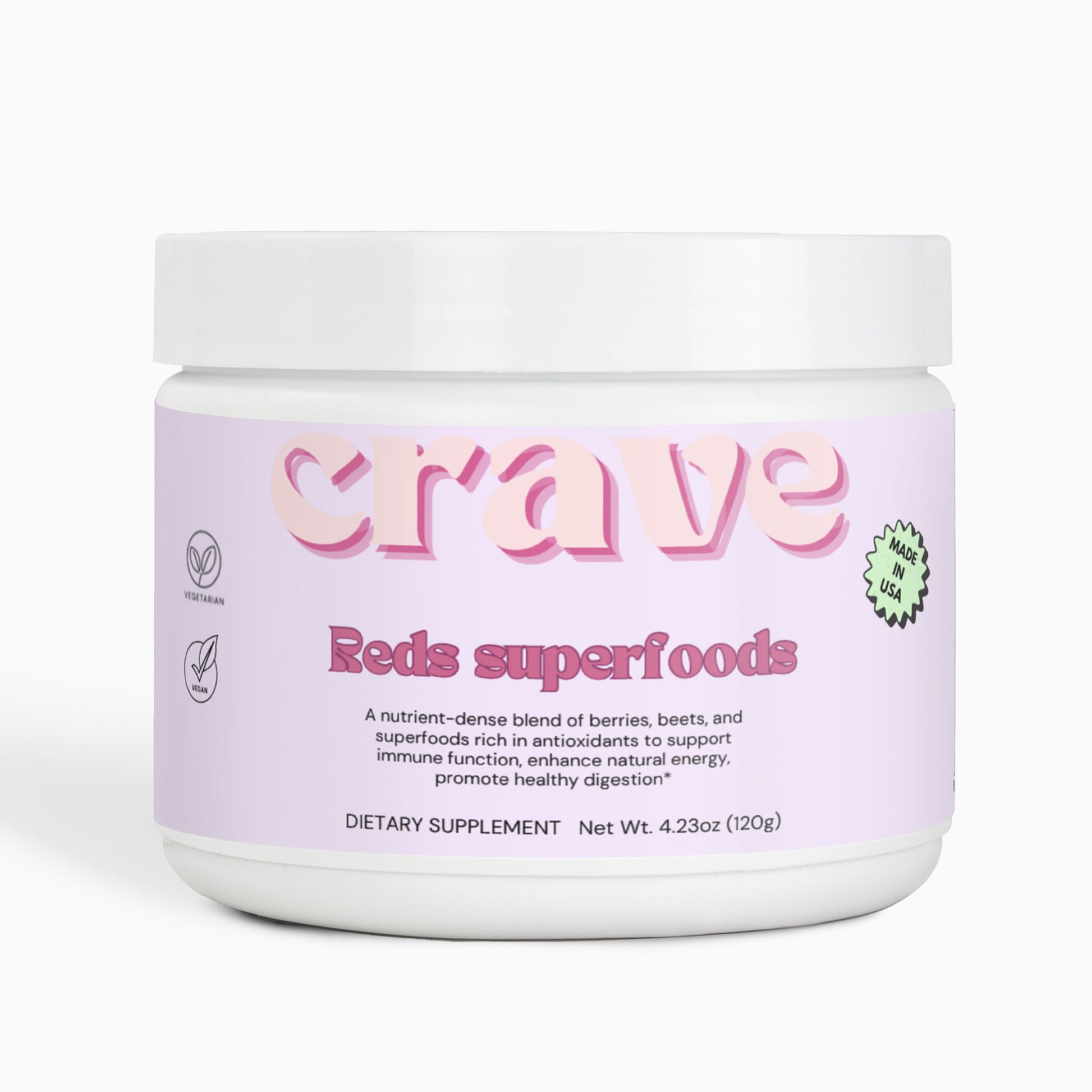 This reds powder supplement offers a rich blend of fruits, vegetables, and botanicals aimed at delivering antioxidants, fiber, and essential nutrients for overall health. The formula includes Beet Root, Strawberry Juice, Hibiscus, and a variety of other nutrient-dense ingredients like Acai Juice Powder and Cranberry Powder, designed to support optimal wellness. With a content of 120 grams, this supplement is perfect for daily consumption, providing a convenient way to boost your intake of vital nutrients and antioxidants to support health and vitality without the need for artificial additives.*