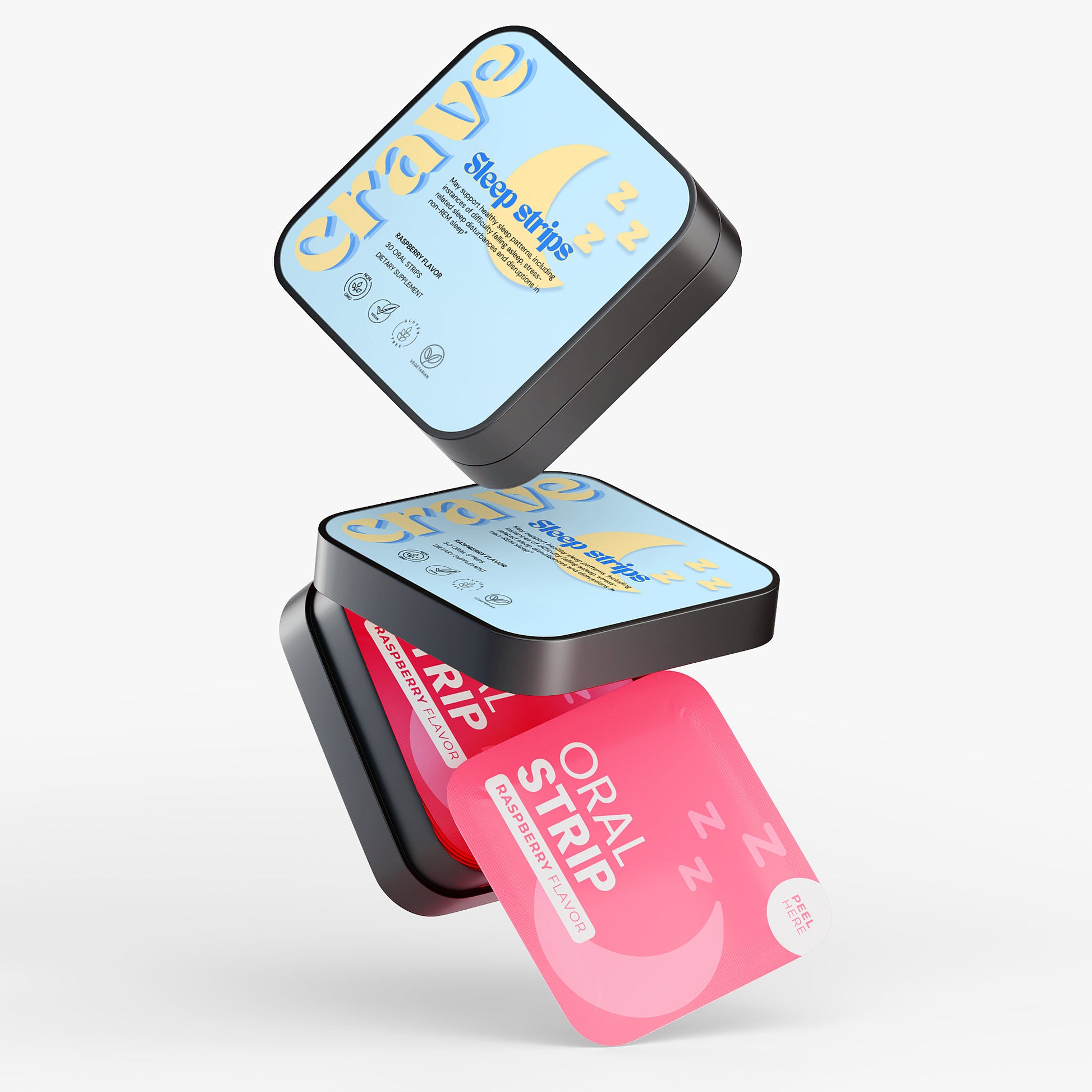 Ingredients: Pullulan, Valerian root extract, Lavender extract, Chamomile extract, Hibiscus extract, Cellulose, Raspberry Flavor, Malic acid, Xylitol, Lecithin, Erythritol, Sorbitol Syrup, Medium Chain Triglycerides, Steviol Glycosides, Melatonin